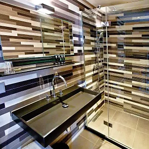 Die Zimmer überblicken die Stadt. Sie sind in modernem Dekor gestaltet und bieten eine begehbare Dusche und eine getrennte Toilette in den Badezimmern.
